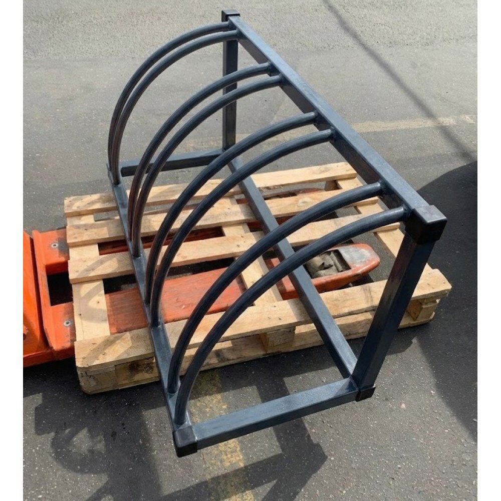 Велопарковка закруглённая на 4 места с размерами 110 см в длину, 45 см в ширину и высотой 45 см, весит 16 кг.